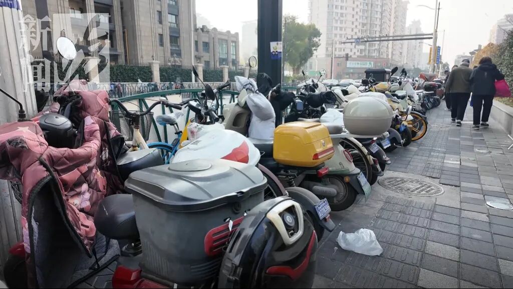 市民:这里自行车电瓶车停完后,轮椅就不能推了,路面变小了。