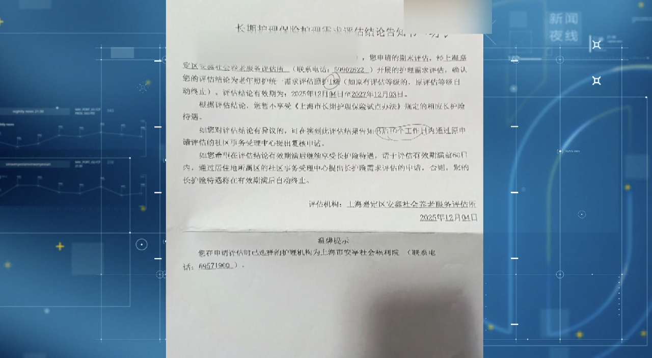 昨天,评估人员再次上门,刘老太完成了现场评估,而王老伯因摔倒受伤终止评估。目前,刘老太还在等待复核结果,而王老伯会再次提交病历材料,申请状态评估。