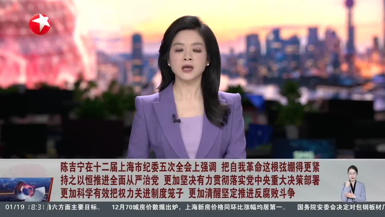 中国共产党上海市第十二届纪律检查委员会第五次全体会议今天(1月19日)举行。