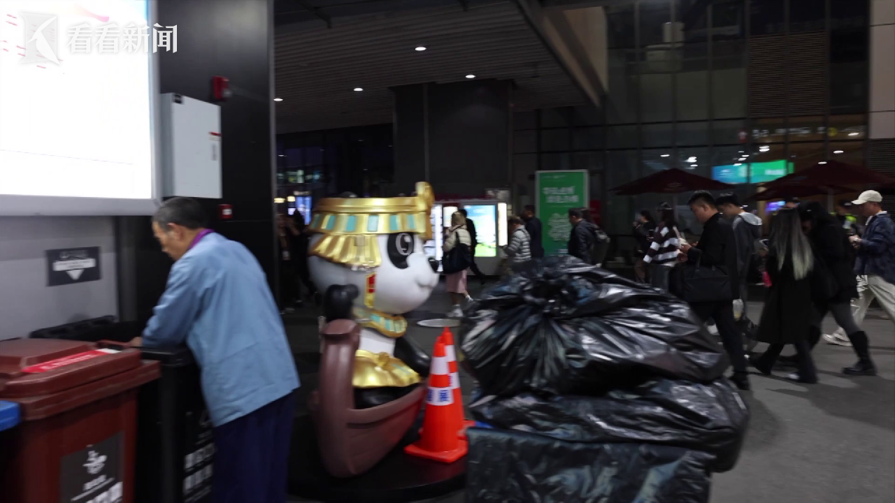 进博会服务保障人员正在认真清扫:“闭馆也要自扫门前雪。达到这种素质的人什么都不怕。”她指着周围,“你看现在有多少人比我们还晚。”