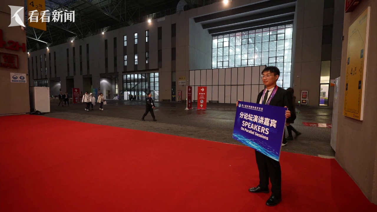 进博会服务保障人员坦言:“累,咋不累呀。但做自己的本分工作就可以了。我们是服务人员嘛,要晚一点走。”