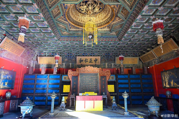步入正殿明间,雍正帝小朝会场景庄严肃穆,宝座上方高悬其御笔"中正仁和"匾;西暖阁内,"勤政亲贤"匾和"惟以一人治天下,岂为天下奉一人"的对联,彰显着帝王的勤勉与自警;闻名天下的三希堂,复原了乾隆时期的原貌;东暖阁,则选择了同治、光绪、宣统时期"垂帘听政"的场景布置。