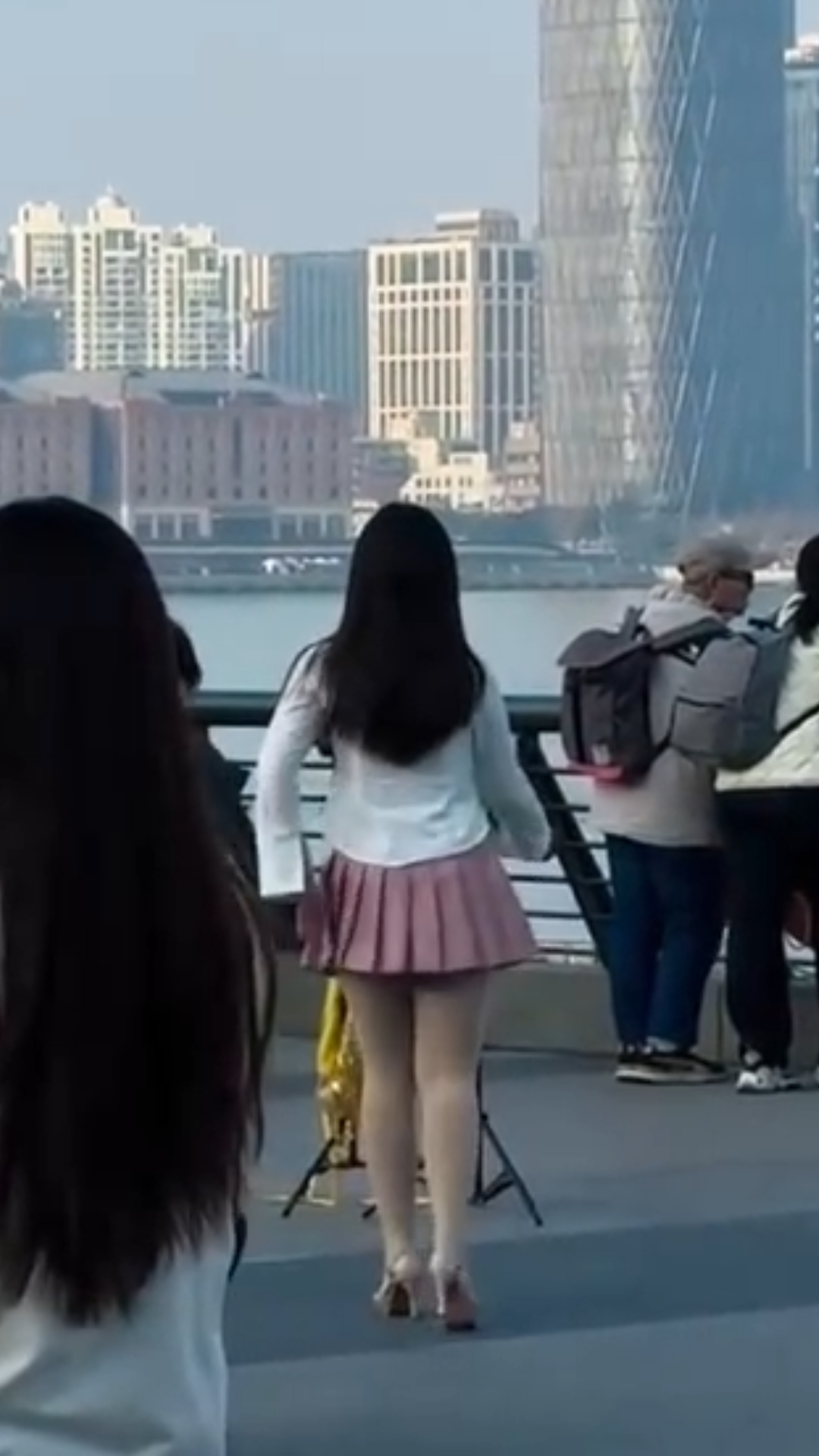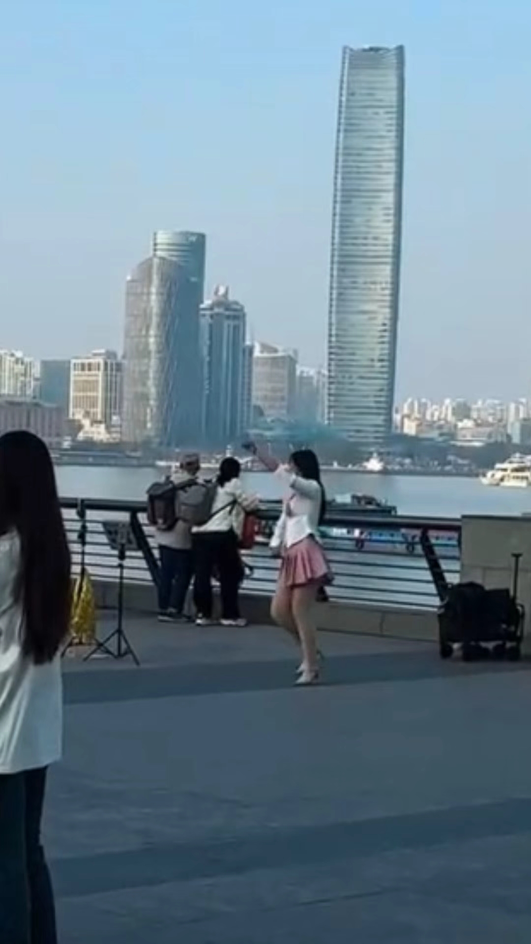 据视频画面显示,一名身穿粉色短裙女子在外滩对着手机镜头跳舞,视频拍摄者称黄浦公安用无人机喊话15分钟女子仍无动于衷。