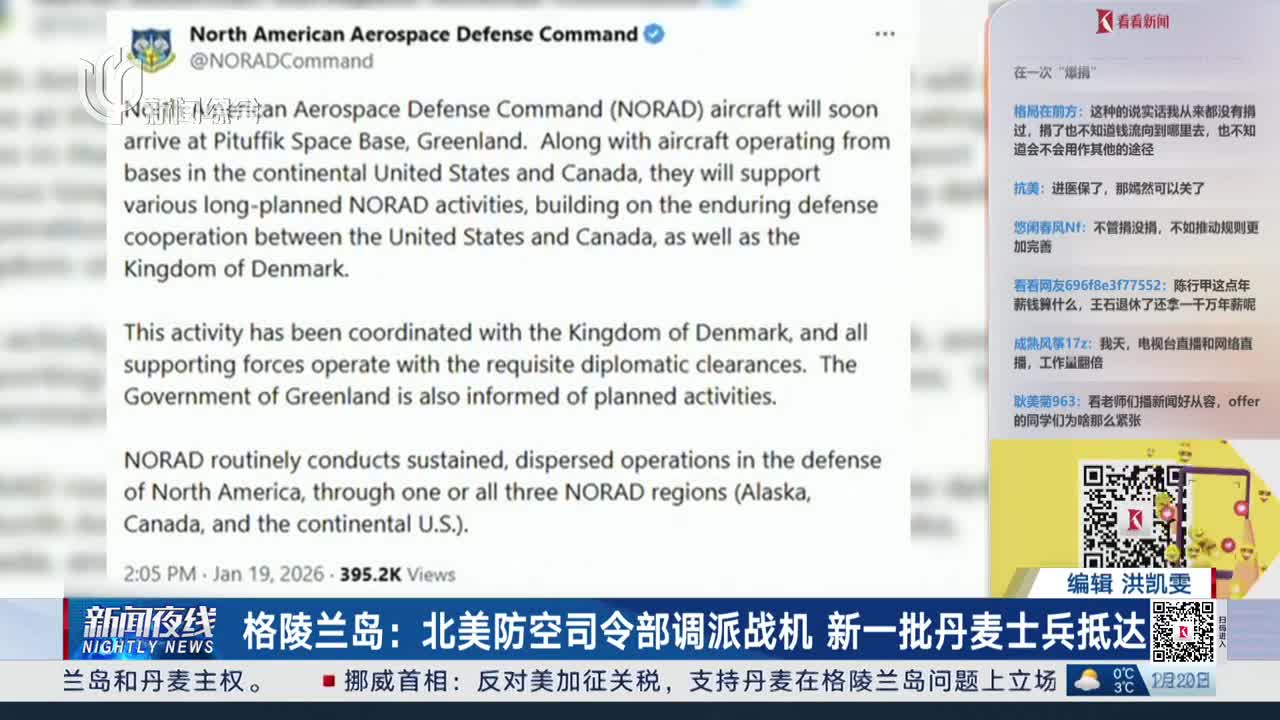 欧盟委员会主席冯德莱恩20日在瑞士达沃斯举办的世界经济论坛上表示,丹麦及格陵兰岛领土主权和完整不容谈判。