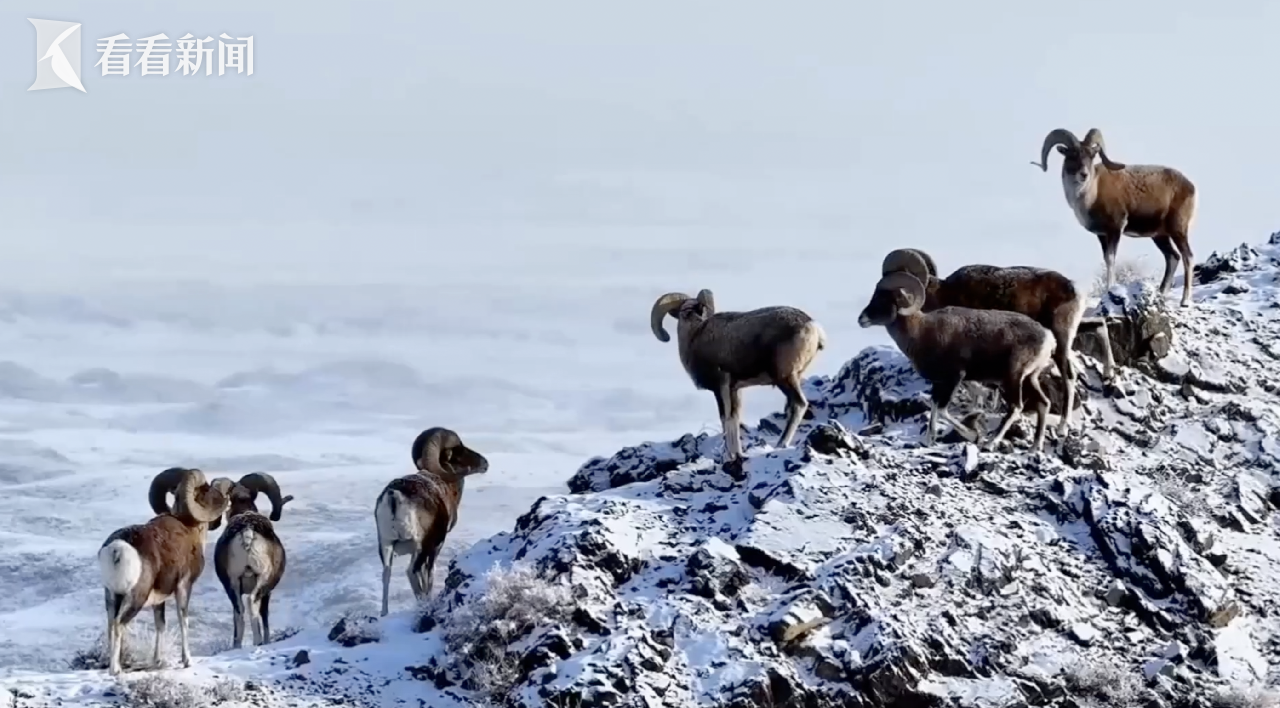 近日,在雪后的新疆“油城”克拉玛依市北麓戈壁山丘,一群群国家二级?;ざ锱萄?,漫步在银装素裹的戈壁山野间,或踏雪觅食,或驻足观望。